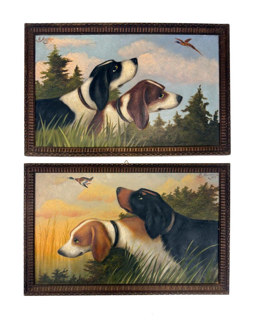 Due dipinti raffiguranti Cani a caccia